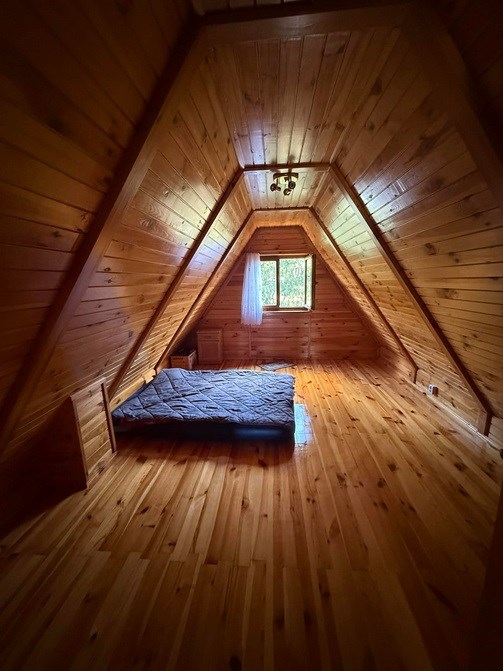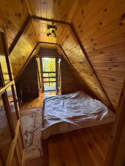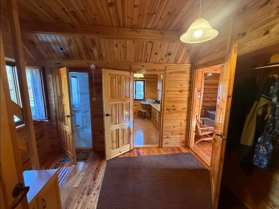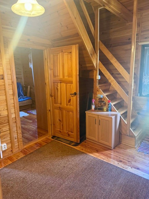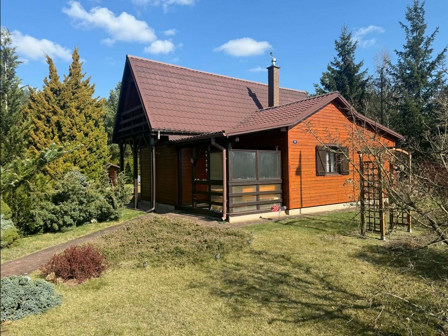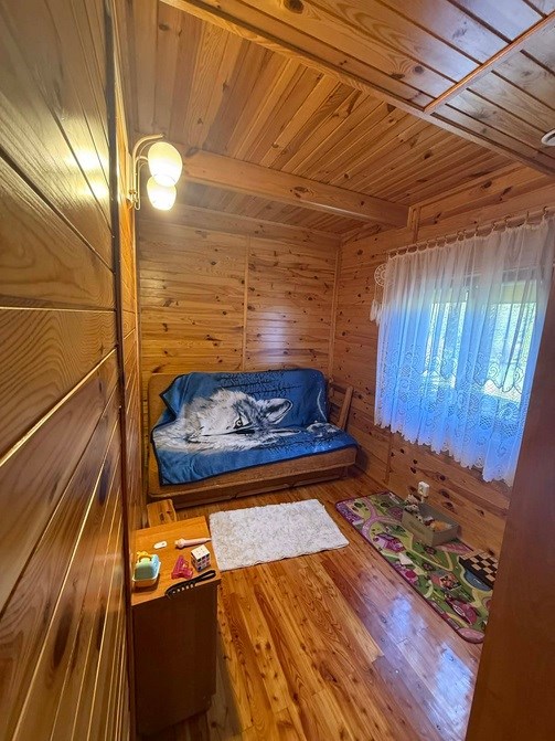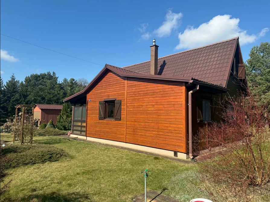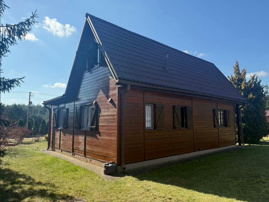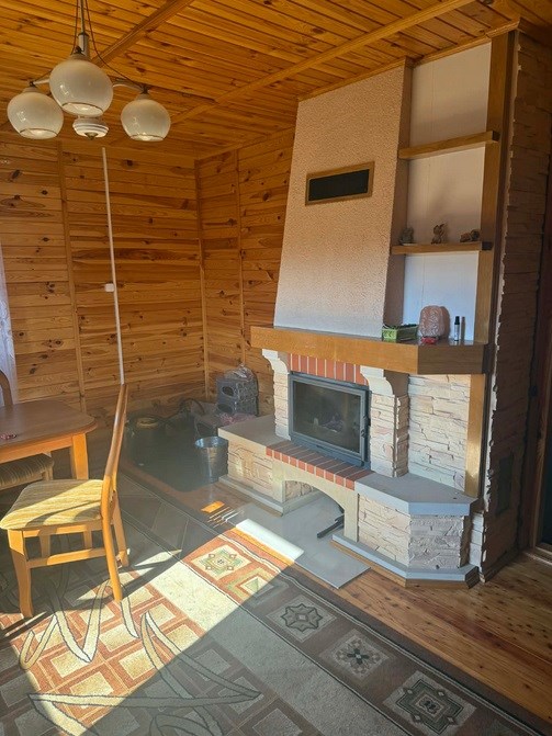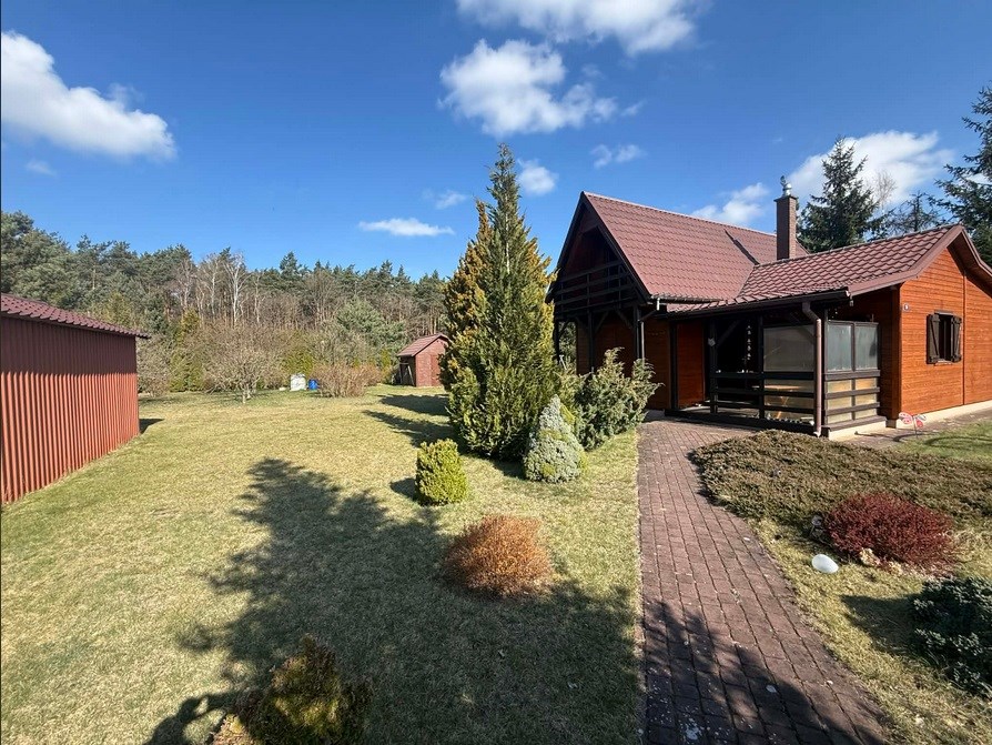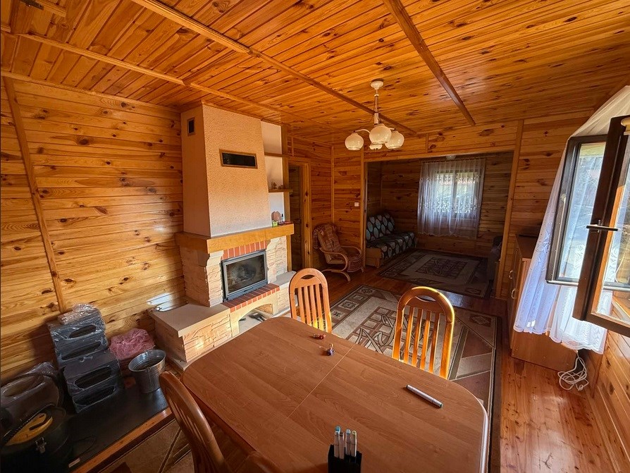 Drewniany dom, zbudowany w 2004 roku, z ogrzewaniem kominkowym, znajdujący się w bliskiej odległości od Parzęczewa.