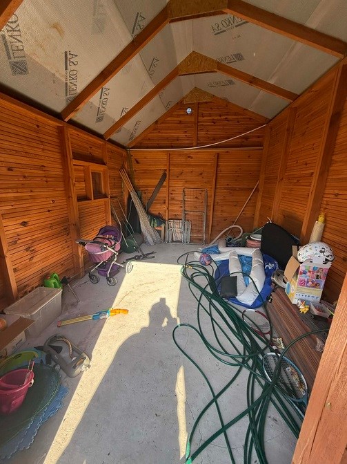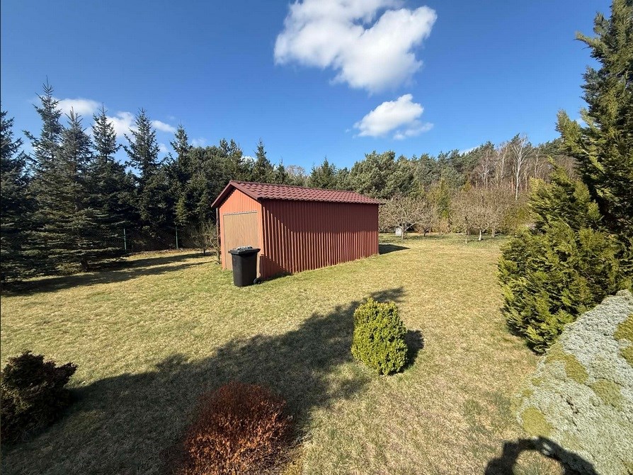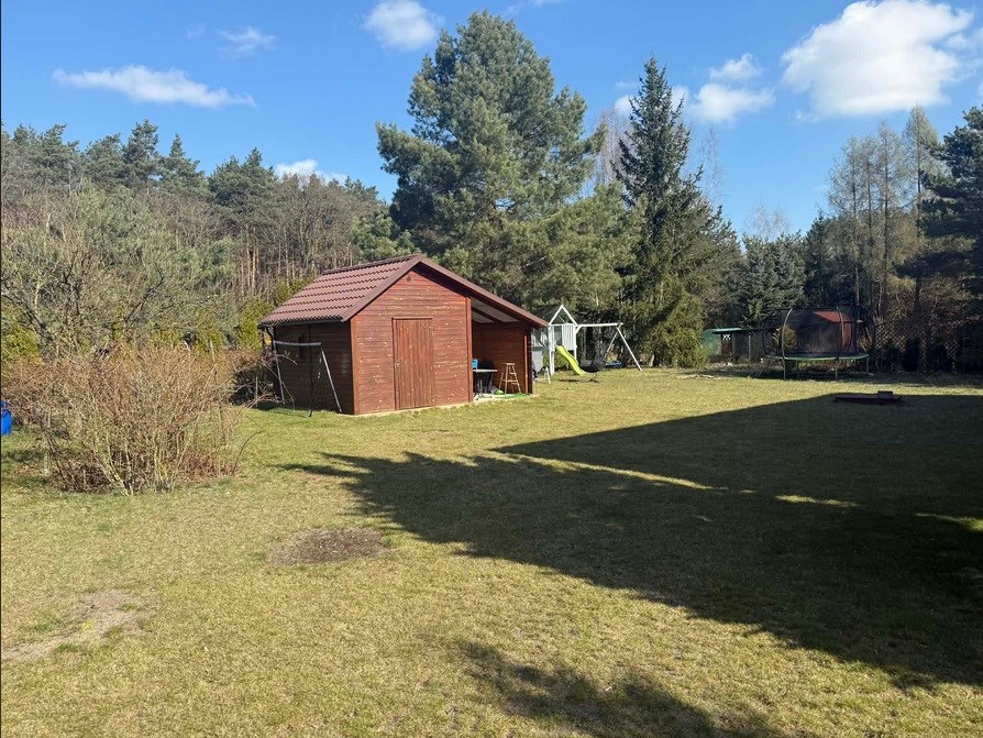 Dodatkowo na działce znajduje się budynek gospodarczy (12mkw) wraz z wiatą (8mkw) z wybetonowanym podłożem. Na działce znajduje się również wolnostojący garaż blaszany. Plac zabaw HB
