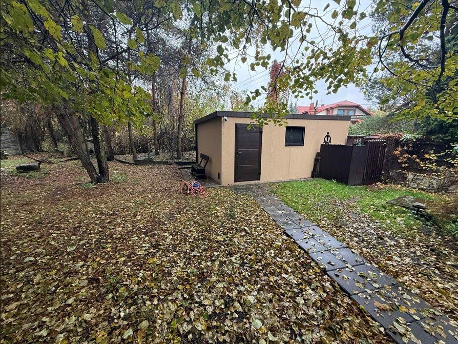 również wolno stojący garaż jednostanowiskowy z wyjazdem na drogę.