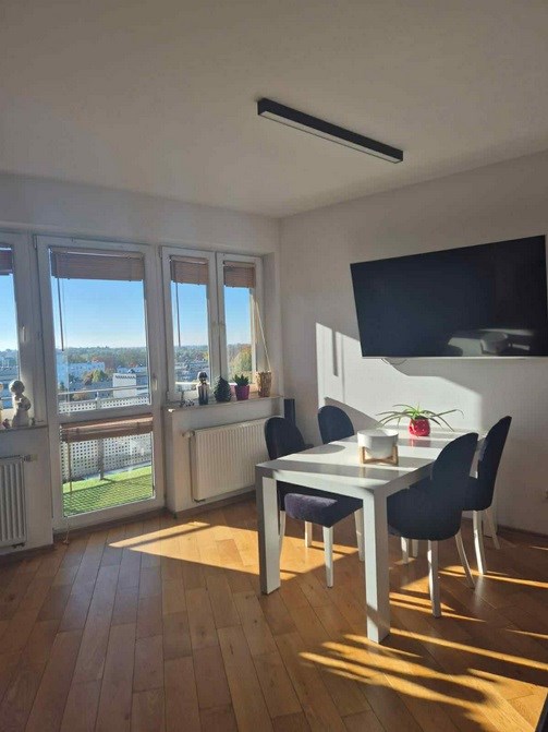 Przedstawia ofertę wynajmu apartamentu w Łodzi
